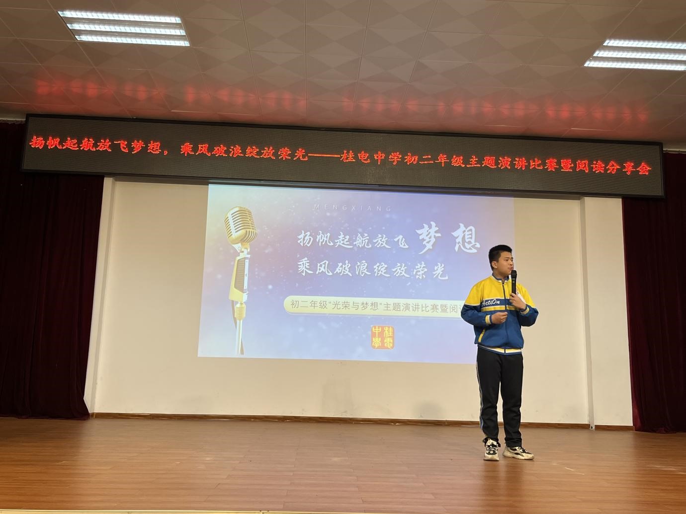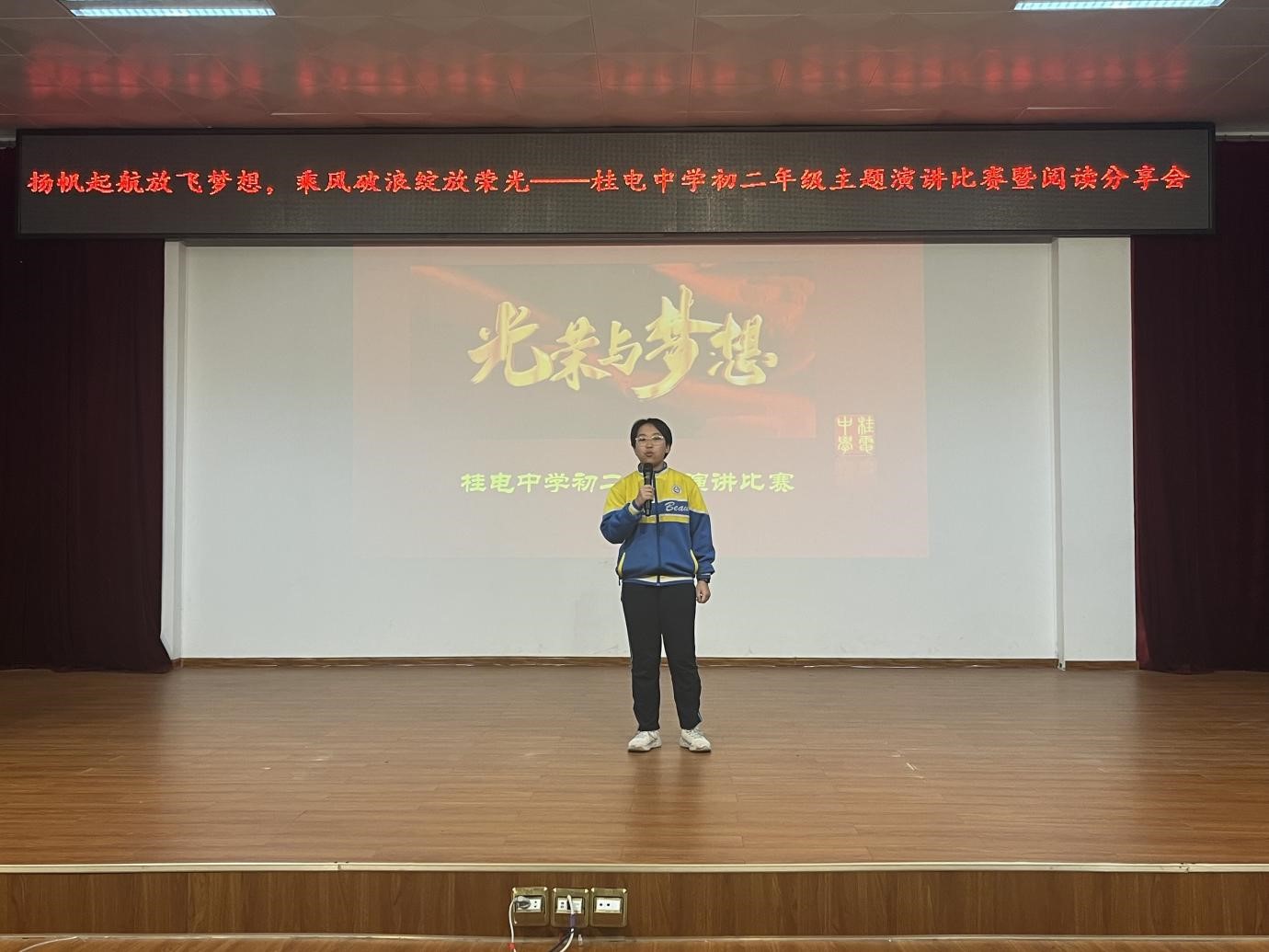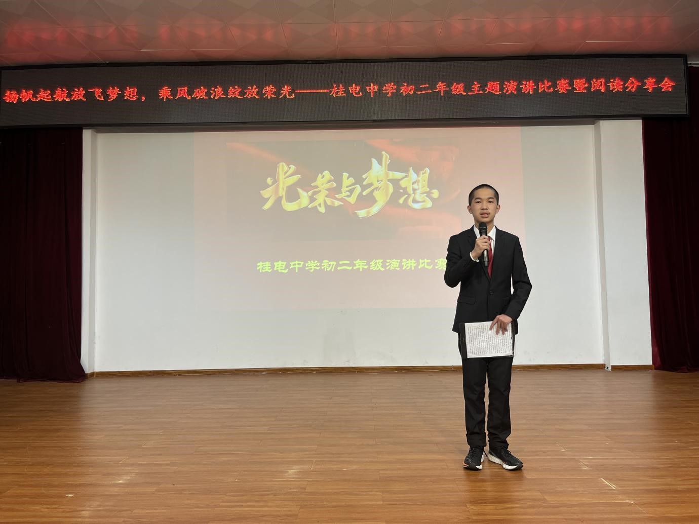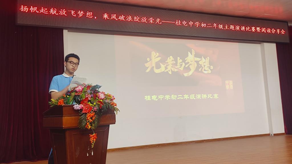 扬帆起航放飞梦想,乘风破浪绽放荣光——桂电中学初二年级“光荣与梦想”主题演讲比赛暨阅读分享会时间:[2023-04-23] 来源:政教处 点击数:86