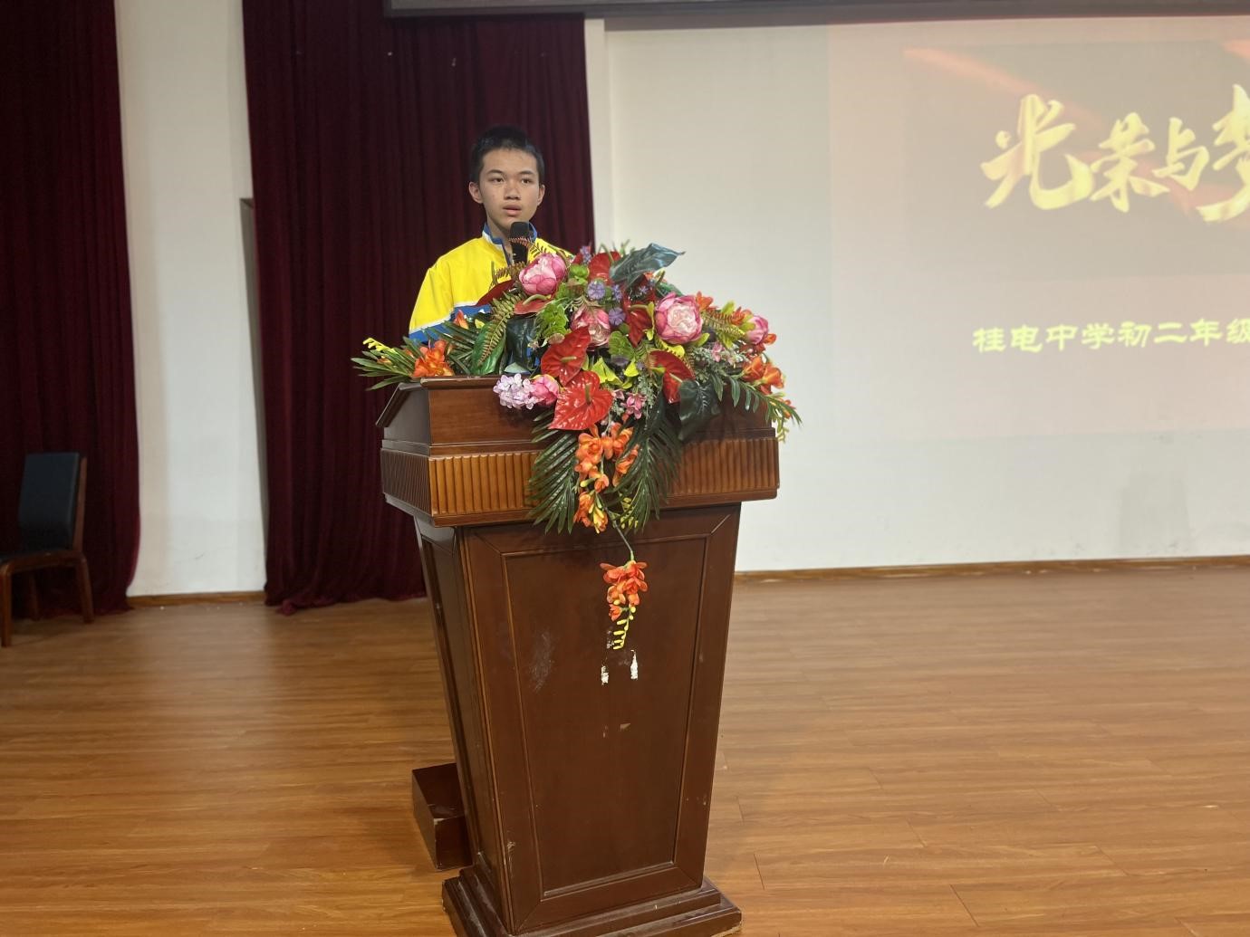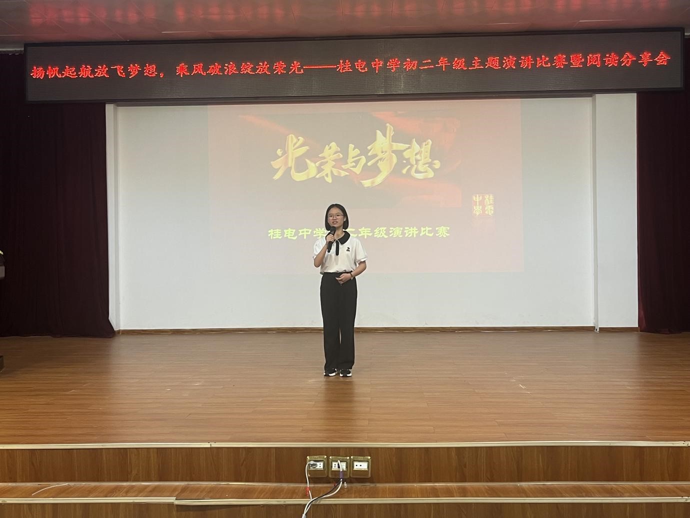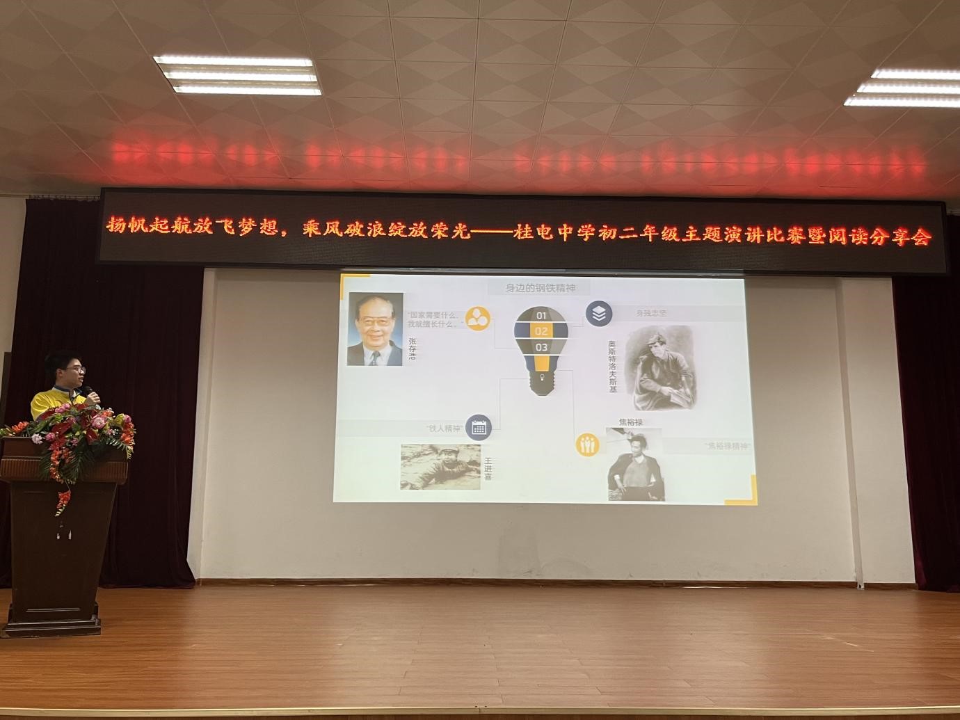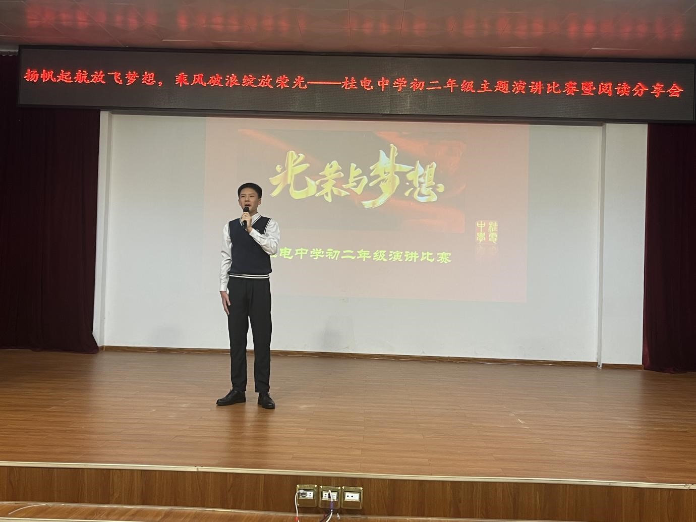 扬帆起航放飞梦想,乘风破浪绽放荣光——桂电中学初二年级“光荣与梦想”主题演讲比赛暨阅读分享会时间:[2023-04-23] 来源:政教处 点击数:86