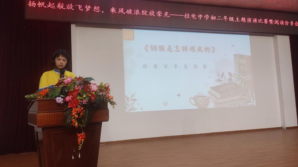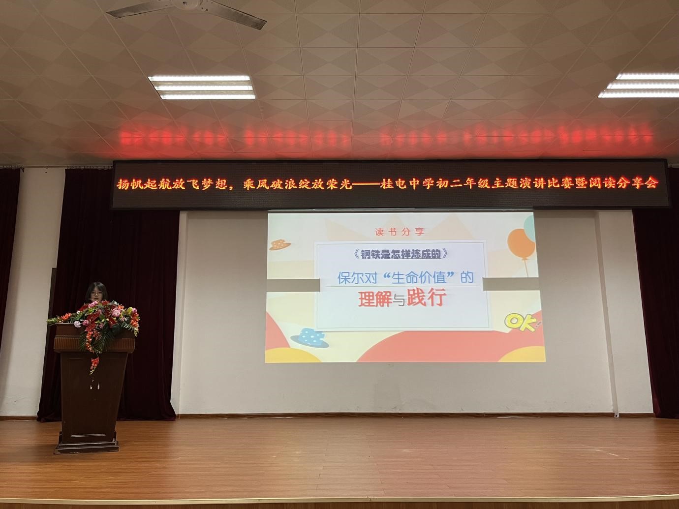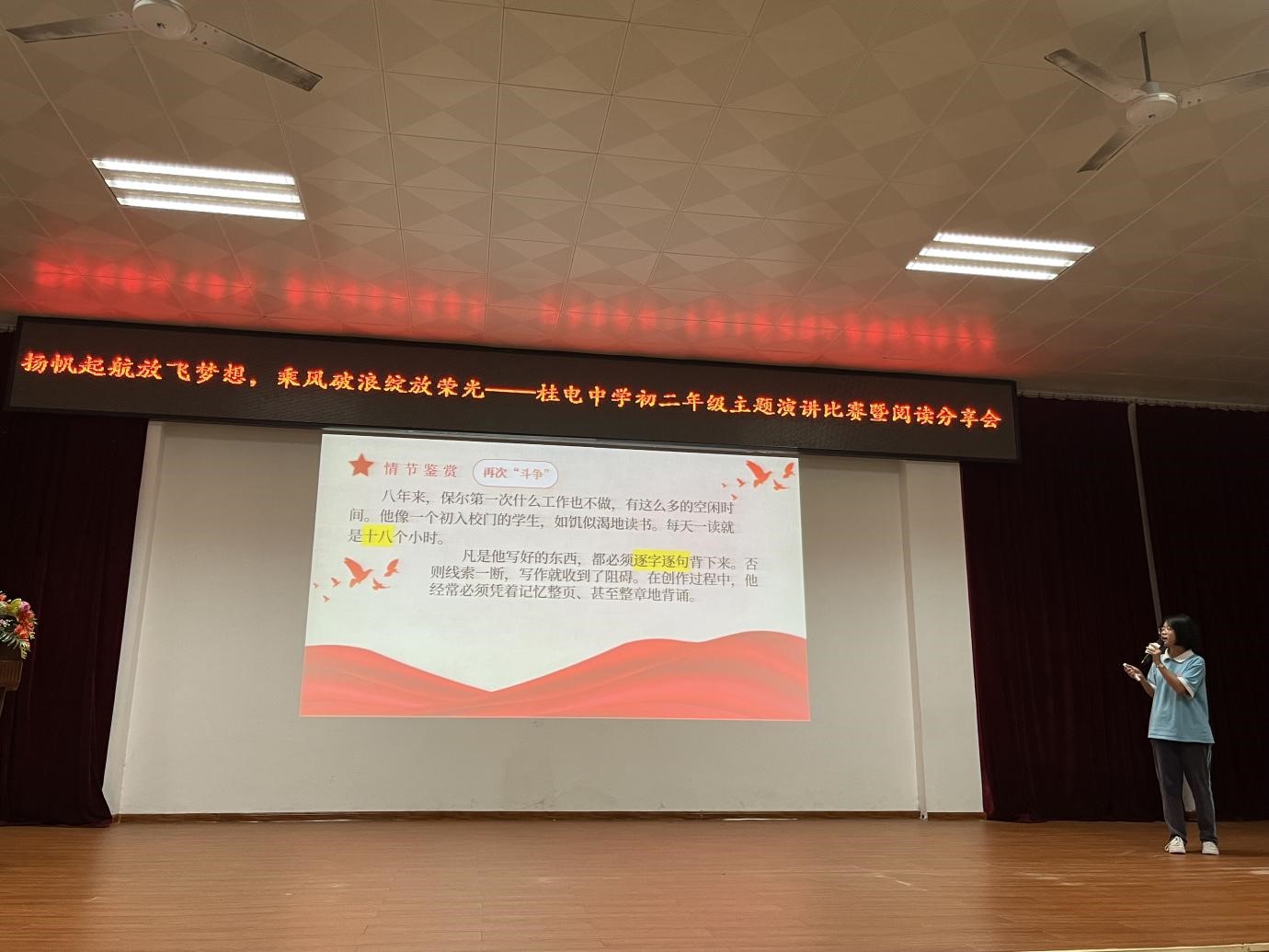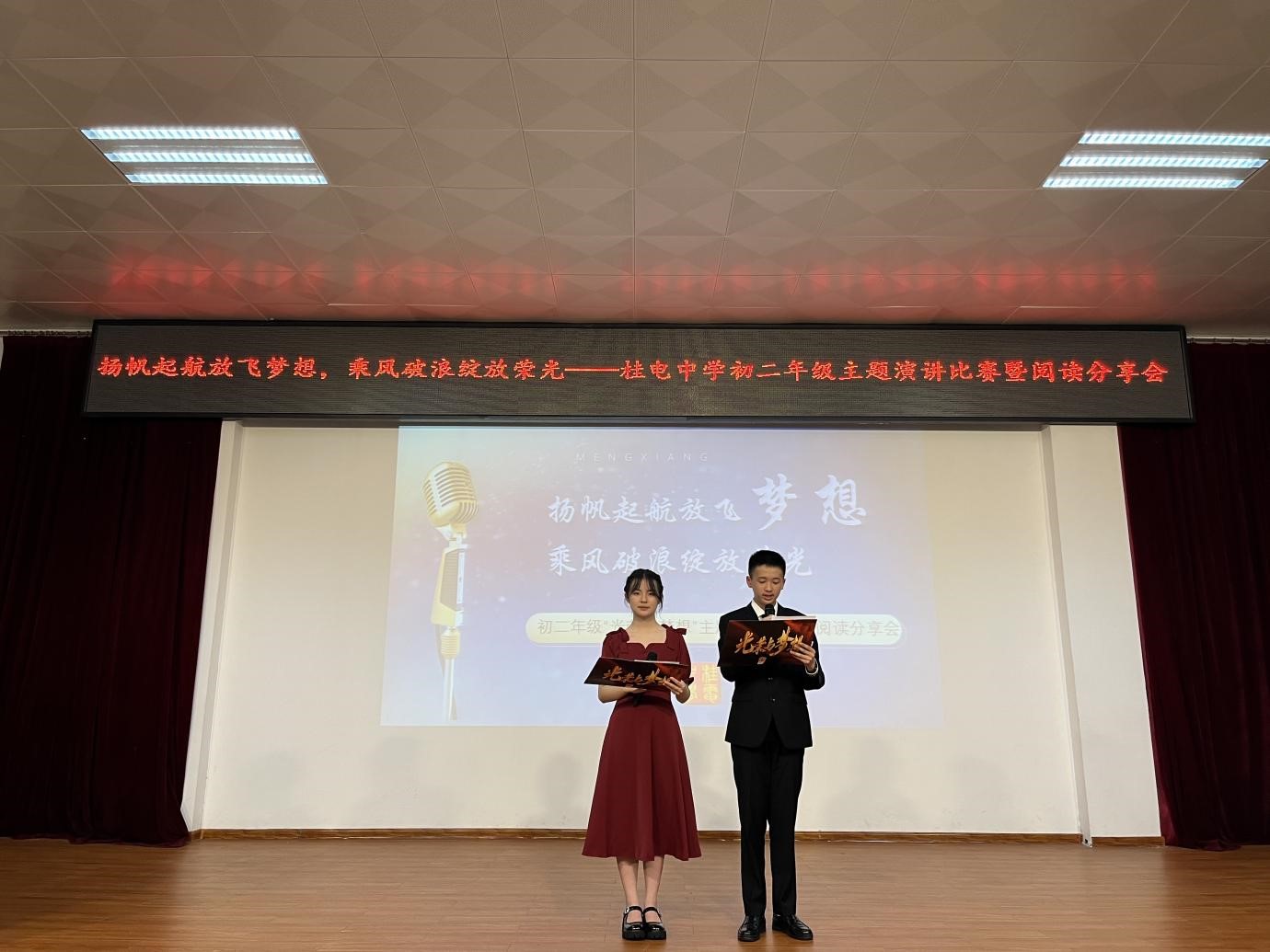 扬帆起航放飞梦想,乘风破浪绽放荣光——桂电中学初二年级“光荣与梦想”主题演讲比赛暨阅读分享会时间:[2023-04-23] 来源:政教处 点击数:86