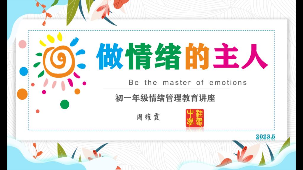 桂电中学初一年级开展“做情绪的主人”情绪管理主题讲座时间:[2023-05-06] 来源:政教处 点击数:161