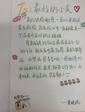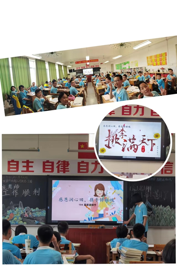 各班班干还利用课余时间精心准备本周“感恩润心田,携手铸班魂”主题班会。在班会上,孩子们给班主任带来各种意想不到的惊喜。有吉他弹唱的;有集体合唱的;有给班主任颁发专属手绘荣誉证书的;更有邀请班主任的家人进教室,给班主任带来温暖的亲情时刻的。同学们的创意和真情,让本届班主任节分外温馨。班主任和孩子们分享了甜蜜的蛋糕,整个教室洋溢着家的温暖。 ![]() ![]() ![]() ![]() ![]() ![]() ![]() ![]() ![]() ![]() ![]() 每一个班级的班干都代表全班给班主任写了深情款款的“班书”。