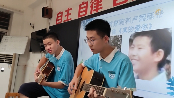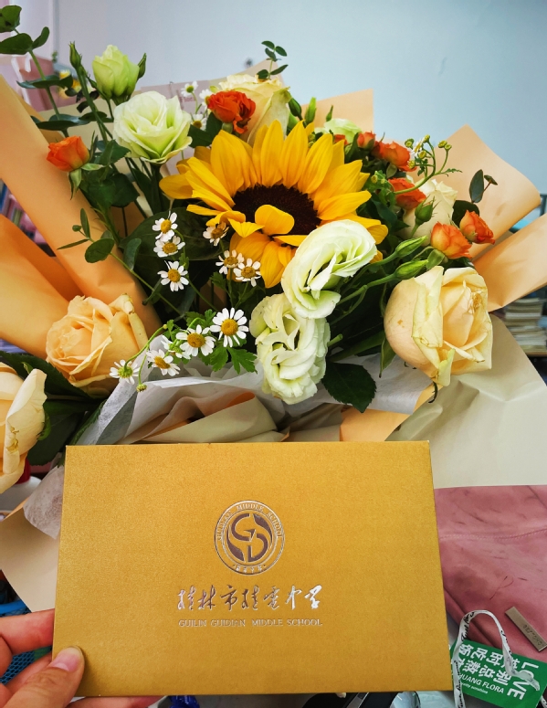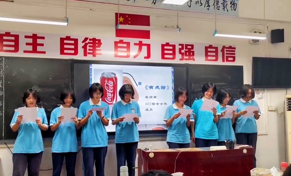 初一196班的同学们代表全体桂电中学学子为全校老师送上诗歌朗诵《有一种美好,叫老师》,表达了对“乐于奉献,积极进取,敢为人先,永不言败”的桂电中学老师们的赞美与感谢。