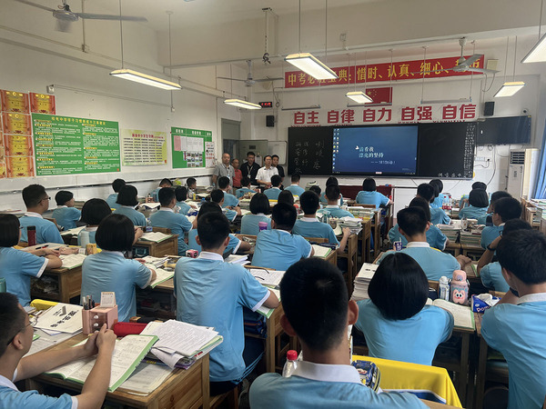 槐香迎夏至,备考正当时。5月30日上午,在中高考工作进入最后冲刺阶段的关键时期,三亿官方官网三亿(中国)_三亿(中国)副校长钟平到桂电中学了解中高考备考情况,看望慰问高三、初三师生,为2023年中高考加油鼓劲,助力桂电中学再创辉煌。桂电中学相关领导陪同。 钟平走进桂电中学高三、初三年级教室,详细询问考生备考情况,看到学生们满怀信心、斗志昂扬,他鼓励同学们在认真复习迎考的同时,更要注重休息,加强锻炼,调整好身体和心态,以更好的状态迎接考试,并预祝各位考生金榜题名、蟾宫折桂。 在高三、初三年级教师办公室,他向辛勤工作在教学一线的高三、初三全体教师表示诚挚的慰问,鼓励老师们保持良好的精神状态,继续发扬优良工作作风,努力做好学生考前指导工作,另外强调学校要做好食品安全,提供优质的后勤保障服务,确保备考各项工作顺利推进,力争今年高考中考再创佳绩。 调研期间,钟平还实地查看了附属学校基础建设情况,听取了相关负责人关于附属学校教师招聘等方面的工作汇报。