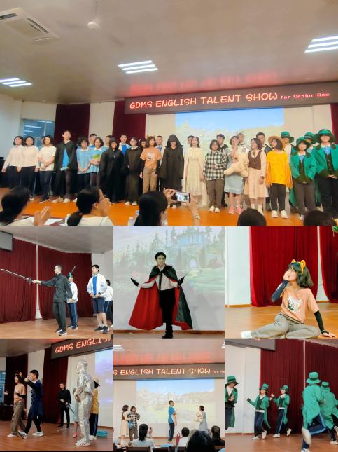 为了提高学生英语学习兴趣和英语综合运用能力,丰富校园文化生活,营造学英语、说英语、用英语的学习氛围,进一步推进课程改革和素质教育的发展,桂电中学高一年级于2023年5月28日晚在食堂三楼报告厅组织举办英语才艺大赛。 本次英语才艺大赛共有12个参赛作品参与角逐。形式多样,有歌剧、情景剧、合唱等,内容丰富,精彩纷呈。参加本次才艺大赛的同学们在舞台上充分展示了各自在英语方面的才艺,为观众呈现了一场视听盛宴,同时也用专注、投入、合作和极强的感染力博得观众的阵阵掌声。 精彩瞬间 (按节目顺序)