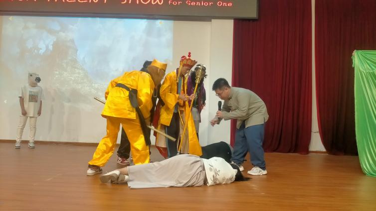 59班的情景剧《The Journey to the West》(《西游记》)。用英语讲述中国故事。同学们的表演引人入胜,观众仿佛身临其境,亲身经历三打白骨精的激烈场景。精心设计的情节与独特的演绎风格引得观众频频鼓掌欢呼。