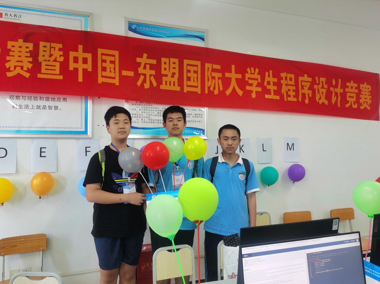 第六届广西大学生程序设计大赛(GuangXi Collegiate Programming Contest,简称 GXCPC)于2023年6月3—6月4日分别在三亿官方官网三亿(中国)_三亿(中国)和广西师范大学两个赛点同步进行,比赛旨在激励当代大学生运用计算机编程技术和技能来解决实际问题, 激发其学习算法和程序设计的兴趣,培养团队合作意识、创新能力和挑战精神。每个参赛队由3名队员和1名教练组成,比赛共13题,英文描述;比赛时长5个小时,上机编程,实时评测,实时排名,比赛公平公正。 桂电中学由高一52班何秋桦、李欣泽、初一200班高子轩三名同学组成队名为“初来乍到”的团队在信奥教练卢艳梅老师的带领下参赛。此次比赛共有158个队伍参赛,桂电中学 “初来乍到”队在和大学生的较量中脱颖而出,最终排名第30名,荣获银牌。