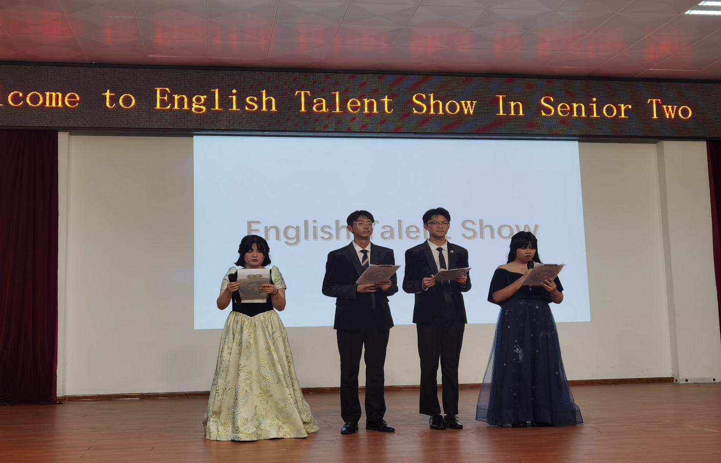 为了更好的激发同学们的英语学习兴趣,提高学生英语口语表达能力,营造良好的英语学习氛围,提高语言综合运用能力,桂林市桂电中学于2023年6月20日在食堂三楼成功举办高二年级英语才艺大赛。 在本次活动中,四位主持人盛装出席,妙语连珠,拉开了本次英语才艺大赛的帷幕。