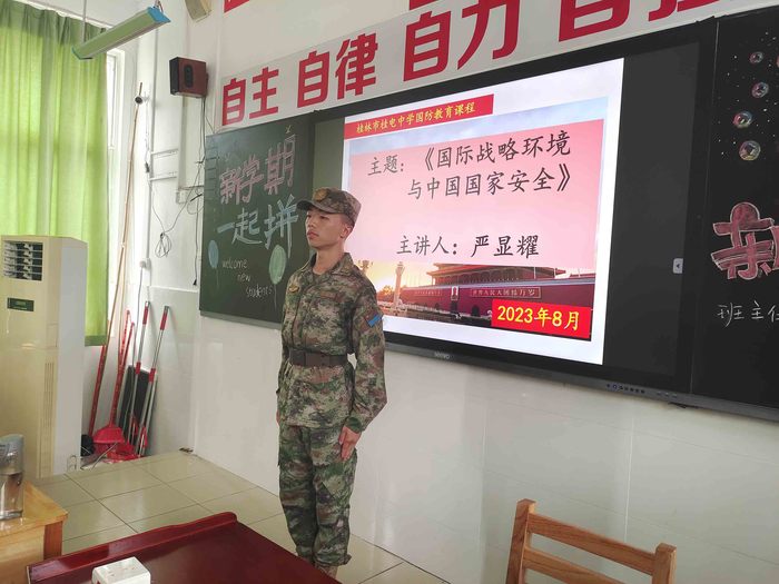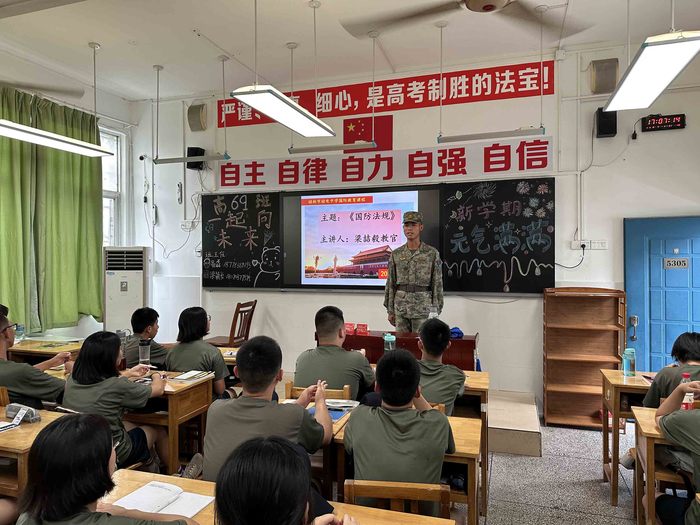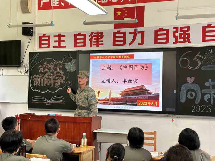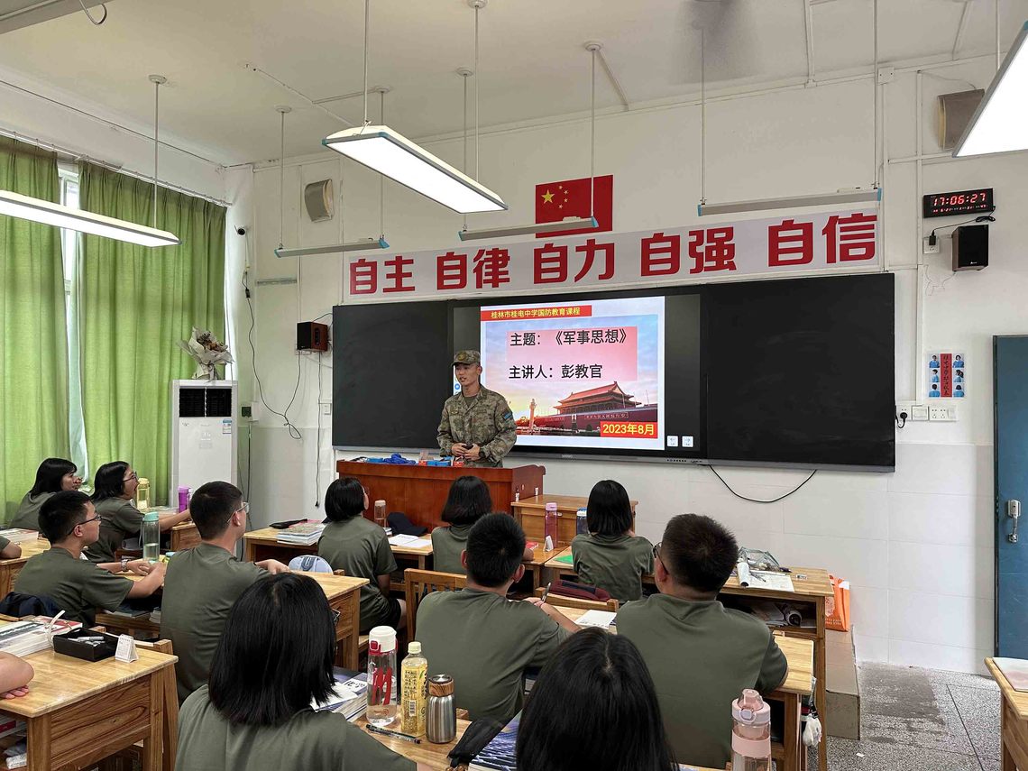 “今天,我们比历史上任何时期都更接近、更有信心和能力实现中华民族伟大复兴的目标,同时必须准备付出更为艰巨、更为艰苦的努力。”这是人民领袖的深情寄语,也是百年大党的热切召唤。习总书记还强调:“青年时代,选择吃苦也就选择了收获。现在,青春是用来奋斗的;将来,青春是用来回忆的”。军纪如铁,意志如钢,正在军训中的桂电中学高一新生对这句话进行了最好的诠释。 ![]() ![]() ![]() ![]() ![]() ![]() ![]() ![]() ![]() ![]() ![]() 战酷暑 磨意志——军事训练正当时 眼下,暑气蒸腾,桂电中学2023级高一新生军训正在热火朝天的进行着。在这场不断挑战自我、战胜自我的训练中,同学们用汗水与付出增强体质、锻炼意志,践行“自主、自律、自力、自强、自信”的桂电中学校训,这都将为未来的学习、生活点燃信念之火,筑牢理想之基。 军纪如铁,意志如钢;千锤百炼,初心不变;汗流浃背,绝不喊累。挺拔的身姿展现出昂扬的斗志,如炬的眼神流露出坚定的信念。 ![]() ![]() ![]() ![]() ![]() ![]() ![]() ![]() 铸军魂 强信仰——国防教育进行时 为加强国防教育,厚植家国情怀,增强国防意识,了解国防军队现代化,军训期间,学校邀请教官为同学们讲授国防知识,进行理论学习。教官或用数据,或用照片,或结合自身经历给高一的同学们阐述了建设一支强大人民军队以及开展全民国防教育的重要意义,并从国防的概念、我国国防概况、我国国防军队现代化建设和我国国防事业发展情况等方面为同学们普及了相关知识。 通过教官们的生动讲解,同学们收获颇丰,进一步弘扬了爱国主义精神,激发了同学们热爱国防、自觉参与国防建设的意识。同学们纷纷表示,在今后的学习、生活中一定会关心、支持国防建设,构建总体国家安全观;努力学习科学文化知识,积极投身国防建设,从我做起、从现在做起,为建设社会主义现代化强国贡献自己的力量。 “少年强,则国强。”不管是军事训练还是国防教育,都是同学们培育爱国精神和塑造国防意识的重要一课。相信通过此次军训,同学们一定会努力成为有理想、敢担当、能吃苦、肯奋斗的新时代接班人! 初审:邓富强 二审:周荔 终审:周维霞