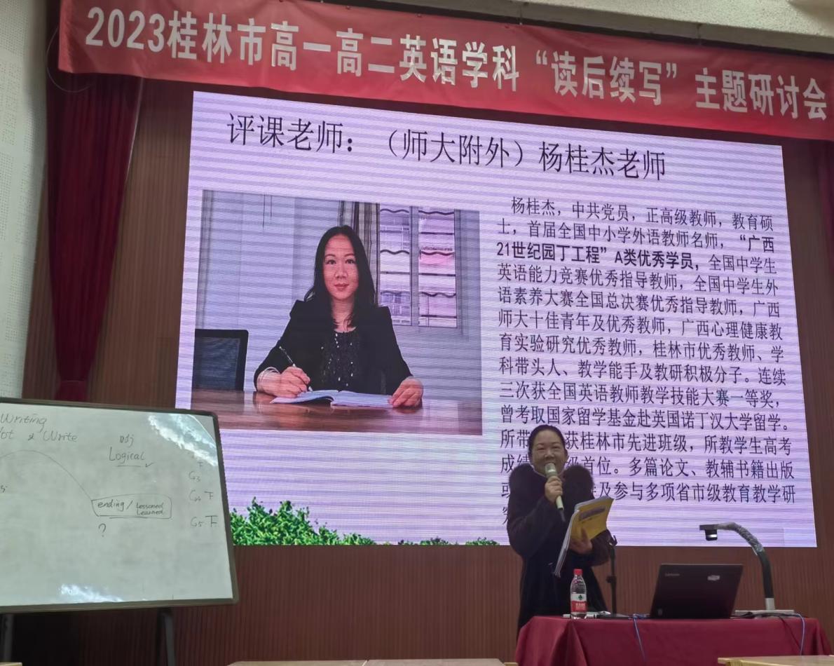 凝心聚智研高考 奋楫笃行谋未来———2023年桂林市高一高二英语学科“读后续写”主题研讨活动时间:[2023-11-16] 来源:桂电中学 点击数:104