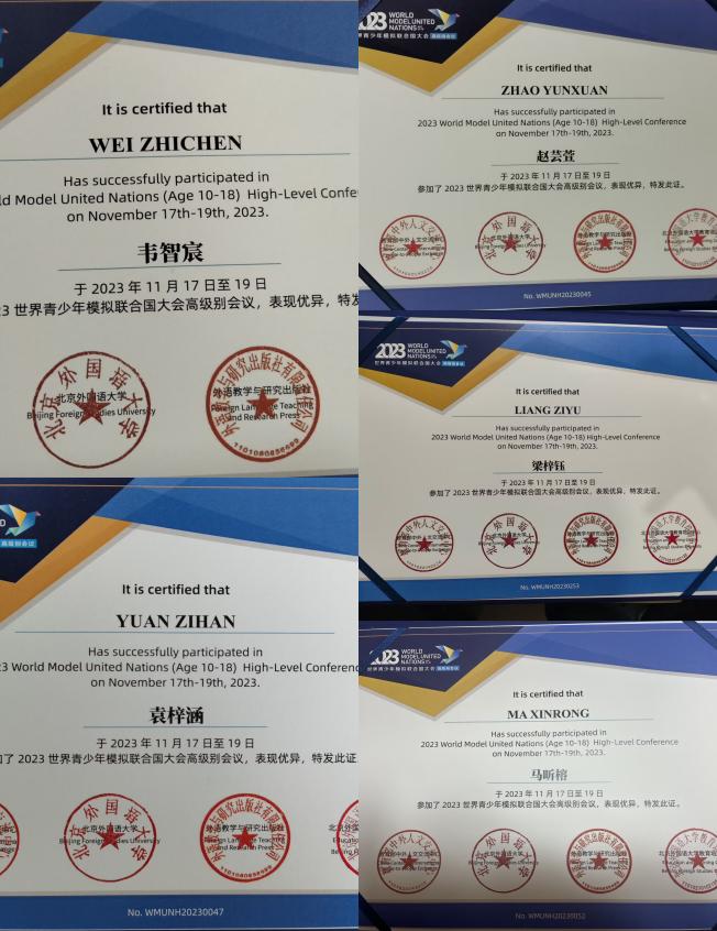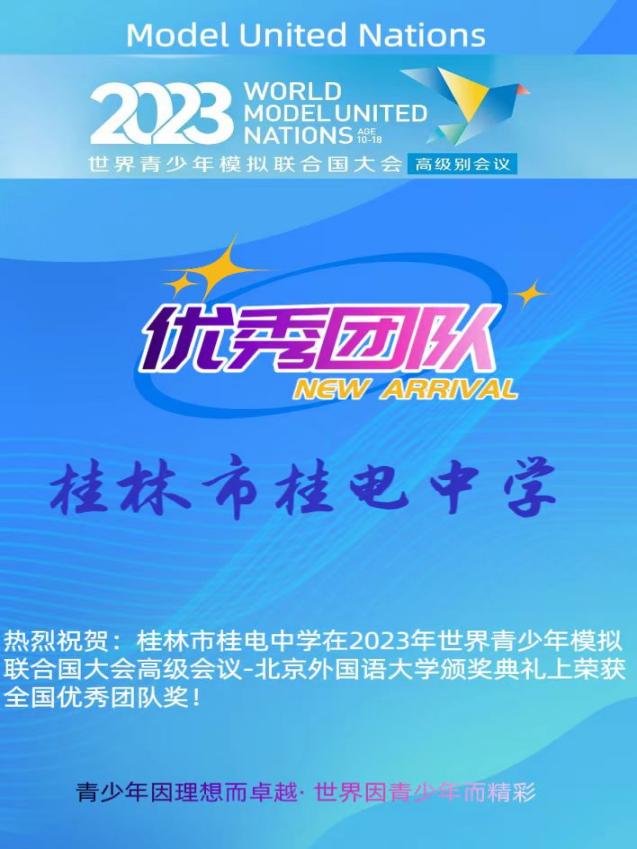 首次出战,载誉而归桂电中学学子首次出战世界模联高级会议时间:[2023-12-04] 来源:桂电中学 点击数:58