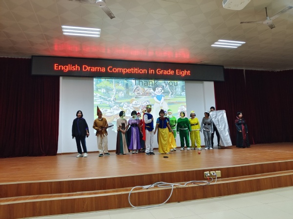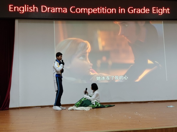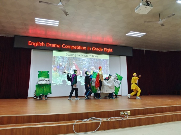 为进一步丰富同学们的校园文化生活,激发学生学习英语的兴趣和热情,营造浓厚的英语学习氛围,提高学生英语理解和口语表达能力,12月1日桂电中学八年级英语组的老师们组织学生进行了一次精彩纷呈的英语课本剧比赛。 赛前,各班同学们精心编排,布置了情境,设置了道具,加上了动作,大家充分发挥了想象力和组织能力,把课本上的内容和中外故事相结合,用英语对白表演出来。比赛中,《木兰从军》、《荆轲刺秦王》、《三打白骨精》、《冰雪奇缘》等精彩上演,熟悉的故事通过同学们用英语自编自导自演呈现在舞台上,新意十足。 此次英语课本剧比赛活动,激发了同学们学习英语的热情,挖掘了学生的表演天赋和语言天赋,进一步提升了学生的综合素质,同时也彰显了桂电中学为每位孩子终身发展奠基的教育理念和教育成果。