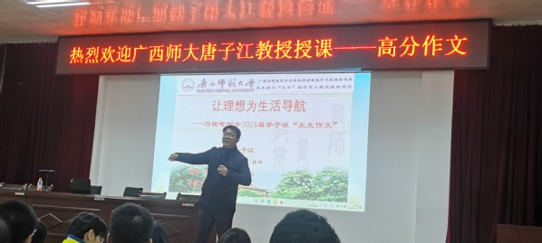 理想为生活导航,妙笔为高考增辉——广西师大唐子江教授莅临三亿官方官网三亿(中国)_三亿(中国)为高三学生进行高考作文写作指导时间:[2023-12-08] 来源:桂电中学 点击数:110