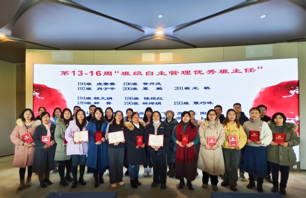 三、“班级自主管理优秀班主任”颁奖仪式 成长没有一锤定音,教育没有一劳永逸。最后由学校领导对第13-16周“班级自主管理优秀班主任”进行表彰,以及对参与本次交流活动的10位优秀班主任颁发“素质教育先进个人”奖。全体班主任从中感受到了优秀班主任的高度责任感以及对落实自主管理的认可,充分发挥激励带动作用,也为学校落实“自主管理”提供了良好借鉴。