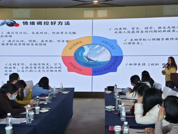 二、微班会设计 初201班班主任王敏老师给大家带来的《情绪管理,与快乐同行》的微班会设计,揭开了活动第二个环节的序幕。王敏老师结合在自主管理过程中遇到的真实情境,说明了情绪管理也是自主管理的主要内容。