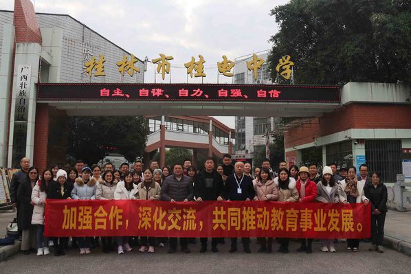 有朋自远方来,不亦乐乎。12月27日上午,南宁外国语学校领导、老师一行41人在孙传忠副校长的带领下到三亿官方官网三亿(中国)_三亿(中国)进行交流、研讨。桂林市桂电中学彭剑波校长、杨剑书记在校门口迎接,对南宁外校领导、老师的到来表示欢迎。文向东副校长、教务处赵雪卿主任陪同参观、交流。