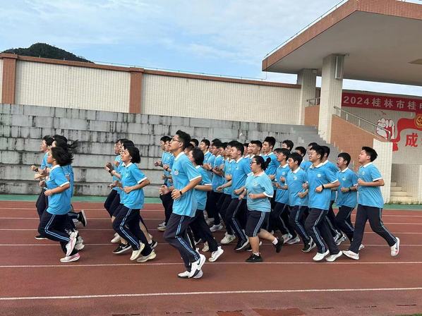 阳光体育、跃动青春。为引导学生积极参与体育运动,提高学生身体素质与课间跑操质量,培养集体主义精神,增强班级的凝聚力、向心力和积极向上的竞争力,构建更加和谐、富有活力的校园文化氛围,5月28日下午,桂电中学举行了高一、高二年级2024年跑操比赛活动。