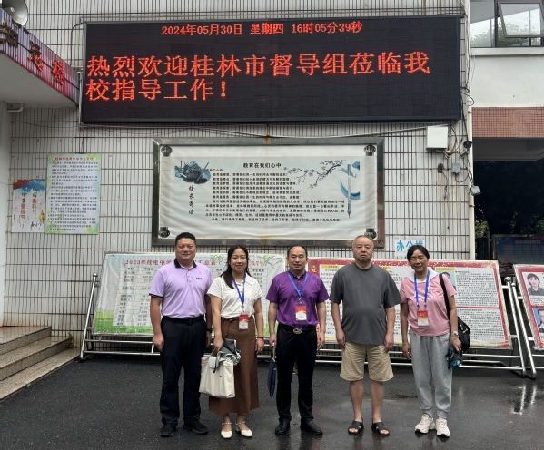 5月30日,桂林市教育局督导组易斌一行到桂电中学开展“双带三督”专项督导检查工作,桂电中学领导班子陪同检查。