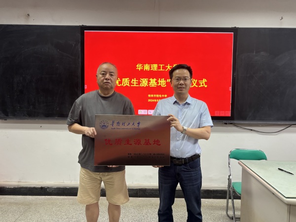 华南理工大学“优质生源基地”授牌仪式在桂电中学举行时间:[2024-05-31] 来源:桂电中学 点击数:680
