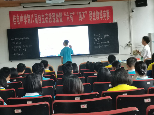 周杰老师数学课 教育的核心在课堂,教师的风采在课堂,学生的成长在课堂。“风劲帆满图新志,砥砺奋进正当时。”比赛虽已圆满落下帷幕,但课堂教学研究没有停止,“自主高效”是桂电中学教师们永恒不懈的追求!