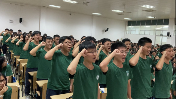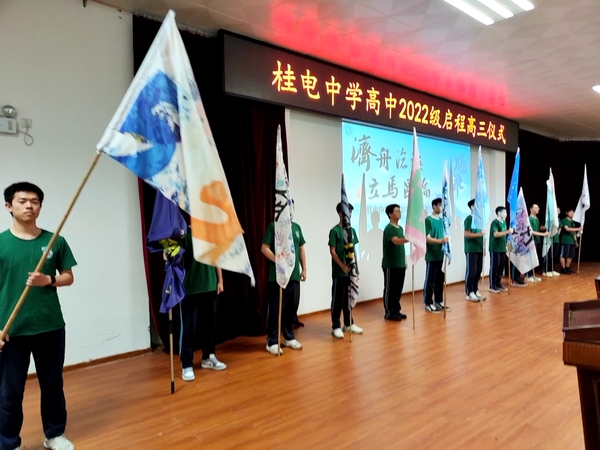 而高63班王仕宇同学的家长的发言则给同学们带来的殷殷嘱托,并代表全体家长做出表态,积极配合学校,加强沟通,全力做好后勤保障,做学生坚强的后盾,共同助力孩子成长。句句叮咛语,片片父母情,家长们的肺腑之言让台下的同学们倍感温暖,备受鼓舞。 最后进入启程高三的宣誓环节。少年应有鸿鹄志,身骑骏马踏平川!带着必胜的决心,赢战高考的信心,高三各班挥舞班旗,振臂高呼,喊出铿锵誓言。发自肺腑的誓言,掷地有声、激情饱满,喊出了桂电学子迎接高三的信心,奋战高考的气魄!