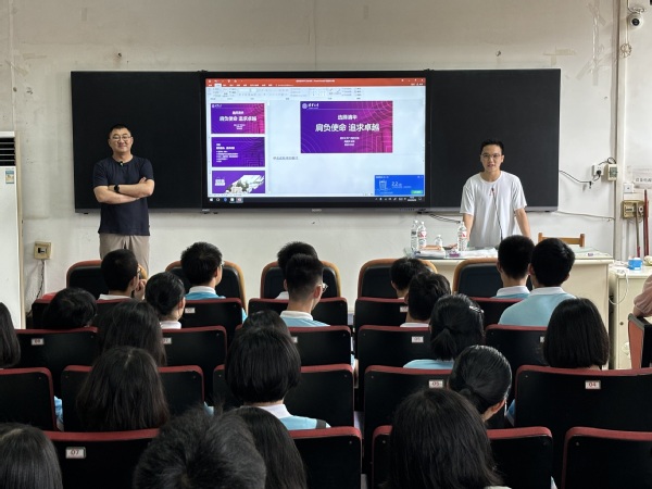 6月28日,清华大学广西招生组副组长周湘文教授到三亿官方官网三亿(中国)_三亿(中国)开展招生宣讲,桂电中学校长彭剑波、副校长唐海松、高一年级、新高三年级部分学生参加宣讲会。