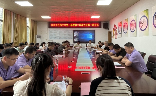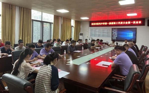 为进一步落实教职工参与学校民主管理和民主监督的权利,不断推进民主管理工作,保障教职工的权益,7月4日,桂电中学在行政楼会议室召开第一届教职工代表大会第一次会议。 会上,桂电中学校长彭剑波作《校长工作报告》,总结一年来学校所取得的各项成绩,并对下一步工作重点和计划进行部署。报告强调,桂电中学要继续强化党建工作,加强教师队伍建设,促进教育教学、科研水平提升;要挖掘师生潜能,搭建成才舞台;要抓好德育教育,建设文明校园,不断提升学校办学水平。