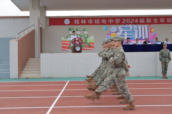 吹响军训号角,点燃青春梦想——桂电中学举行2024级新生军训动员大会时间:[2024-08-12] 来源:桂电中学 点击数:10