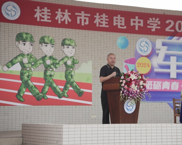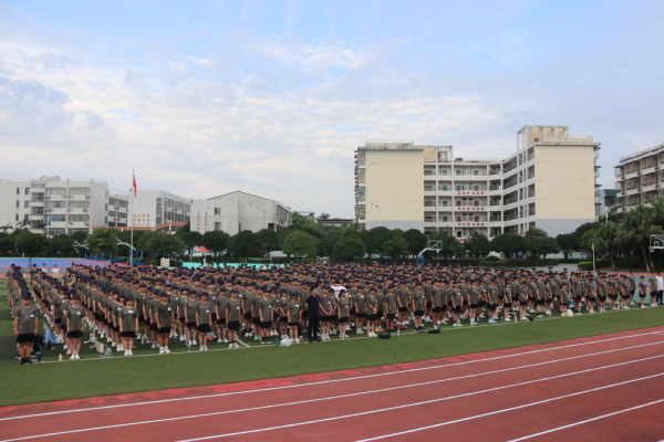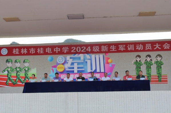为筑牢学生的爱国情怀,增强学生国防观念,培养学生吃苦耐劳、团结拼搏精神,桂电中学将开展为期七天的2024级新生军训。8月12日,2024级新生军训动员大会在田径场举行,桂电中学校级领导、军训教官、2024级高一年级班主任及全体新生参加。