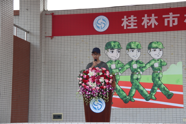 高76班唐中骏同学代表高一新生发言,表达了对军训的期待和决心。他表示将听从教官指挥,服从管理安排,同时也呼吁全体新生不畏艰难,迎难而上,在军训中发扬桂电学子自主、自律、自立、自强、自信的“五自”精神!