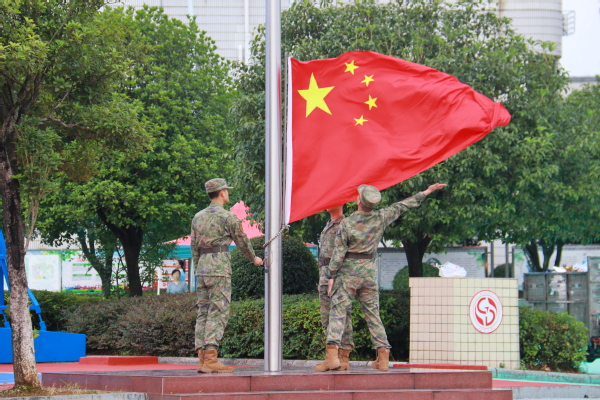 伴随着铿锵嘹亮的国歌,五星红旗冉冉升起,桂电中学2024级新生军训动员大会正式拉开帷幕。