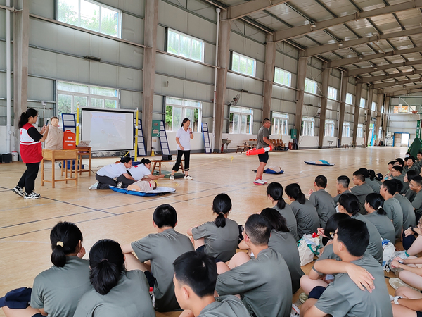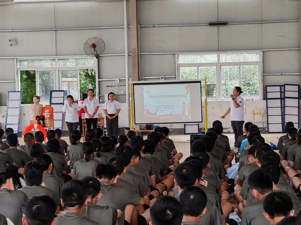 为普及紧急救护知识,增强学生应急救护能力,8月16日,三亿官方官网三亿(中国)_三亿(中国)邀请了桂林红十字会专家、志愿者为高一军训师生开展了2024年“救在身边校园守护”应急救护培训讲座,桂电中学副校长文向东、全体高一军训师生参加,培训讲座分别在食堂报告厅、室内体育馆进行。