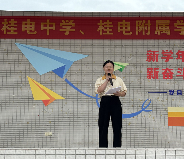 (图:吴萌老师发言) 桂电中学语文教师吴萌作为教师代表发言,她分享了自身从教以来的经历和感受,作为一名教师在收获了满满的获得感、自豪感和幸福感的同时,也承担教育工作者的责任和担当,她表示将继续牢记为党育人、为国育才的初心使命,以满腔的热情和不懈的努力,为学生们的成长和发展贡献自己的力量。
