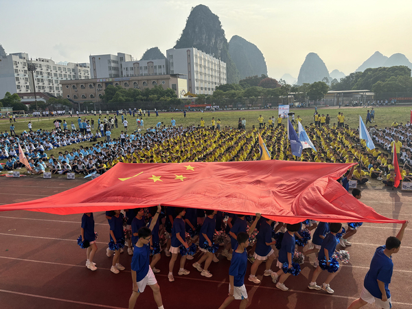 为进一步落实立德树人根本任务,丰富校园生活,增强学生体质,促进学生全面发展,9月28日,桂林市桂电中学第十四届暨桂电附属学校第二届田径运动会开幕式在田径场隆重举行。