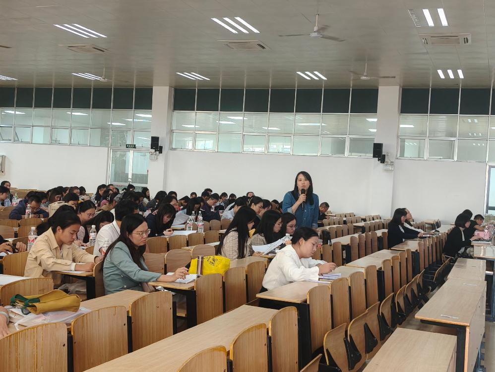 6.国龙外国语学校钟彩萍老师详细地讲解选择题和主观题出题特点与行之有效的应对策略,如大单元教学、关注时事热点、注重培养学生答题能力等。
