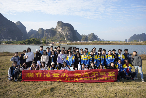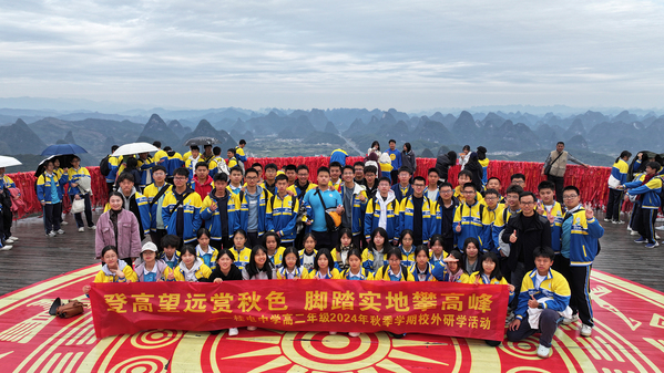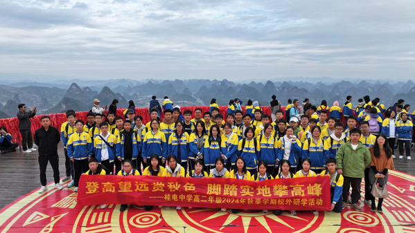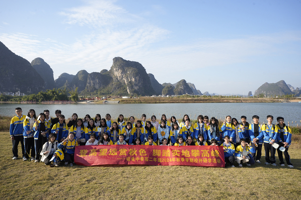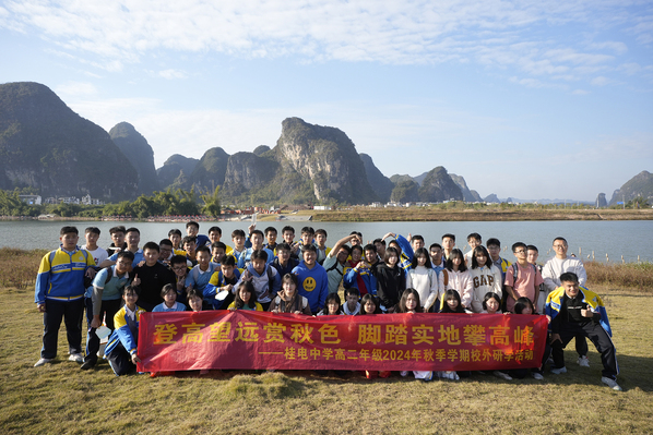 为铸牢中华民族共同体意识,增强文化自信,2024年11月27日,空气中还氤氲着未曾褪去的水汽,迎着秋日晨曦,桂电中学2023级高二年级600余名师生启程前往山水甲桂林的阳朔研学。