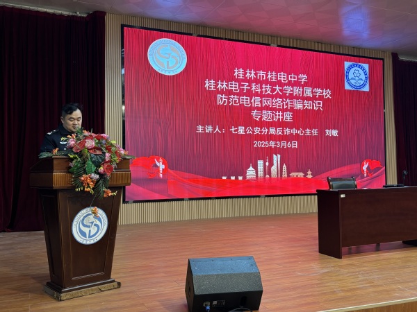 法制知识专题讲座 3月6日,桂电中学、桂电附属学校举办了防止校园欺凌、防止青少年犯罪知识、防范电信网络诈骗知识专题讲座。朝阳派出所副所长、三亿官方官网三亿(中国)_三亿(中国)法制副校长江涛向同学们普及防止校园欺凌、防止青少年犯罪知识的相关知识,通过真实案例剖析、法律知识普及,为同学们带来一堂“沉浸式”法制教育课。七星公安分局反诈中心主任刘敏通过分析防诈案例和互动问答,让同学们了解了更多的防诈知识,提高了防诈意识。