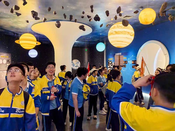首先,学校老师组织同学们有序进入地球记忆·陨石奇观博物馆。在工作人员的专业解说下,同学们参观了景点内展示的世界各地的800多块珍贵的陨石,以及500多个天然矿物晶体和宝石原矿晶体,它们绚丽多彩、令人震撼,同学们体验到了从未见过的大自然瑰宝,对生命的进化历程和陨石奇观有了初步的认识。