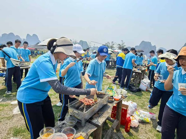 最后来到了活动营地,同学们怀着兴奋的心情开始了本次烧烤活动。在烧烤过程中,大家都分工合作,有的负责生火、有的负责烤食物、有的负责摆放餐具和调料,大家配合默契,忙得不亦乐乎。不一会儿,空气中就弥漫着阵阵烤肉的香味,让人垂涎欲滴。虽然烈日炎炎,但同学们热情高涨,在此过程中,同学们不仅享受到了美食,更重要的是感受到了团队的力量和温暖。
