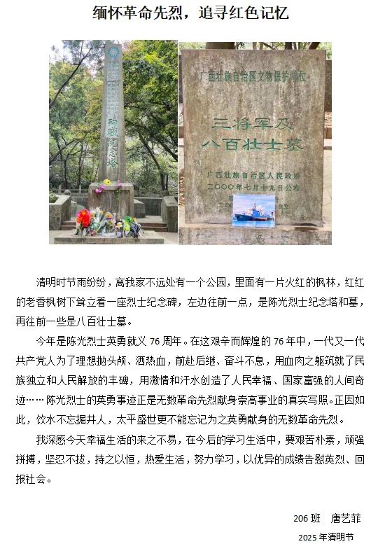 缅怀民族革命先烈,追寻桂林红色记忆时间:[2025-04-09] 来源:桂电中学 点击数:10