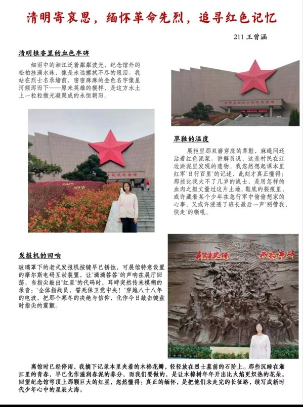 本次主题活动在同学们心中留下了宝贵的记忆,爱国情怀更在心间深植,同学们纷纷表示:无革命英雄的牺牲,我辈无以安享这太平盛世。为此,我辈青年自当赓续精神血脉,担起时代的重任,击楫中流,扬帆远航! 供稿:张芃莹 审核:政教处