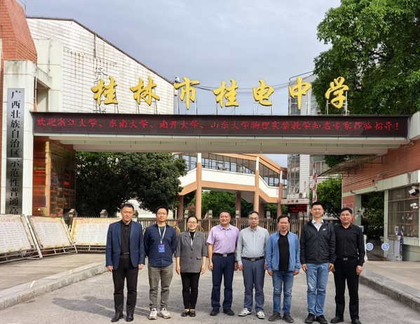 4月25日,教育部物理育人模式改革虚拟教研室成员,浙江大学物理实验中心主任王业伍教授、副主任郑远高级实验师、东南大学物理实验中心副主任陈乾教授、山东大学物理实验中心副主任孙尚倩高级实验师和南开大学基础物理实验中心副主任王槿高级实验师莅临桂电中学、桂电附属学校,开展“大中一体化”衔接的交流访问,基础教育党委书记杨剑,桂电中学副校长文向东、副校长唐海松陪同交流。