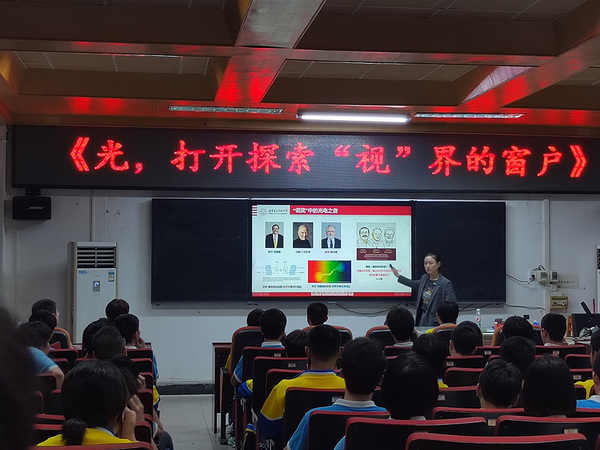 近日,西安电子科技大学光电工程学院韩平丽副教授受邀走进桂电中学,为学子们带来了一场题为《光,打开探索“视”界的窗户》的精彩科普讲座。讲座以生动有趣的形式,带领同学们走进光学的奇妙世界,激发他们对科学探索的热情,并鼓励他们成为未来的“追光人”。