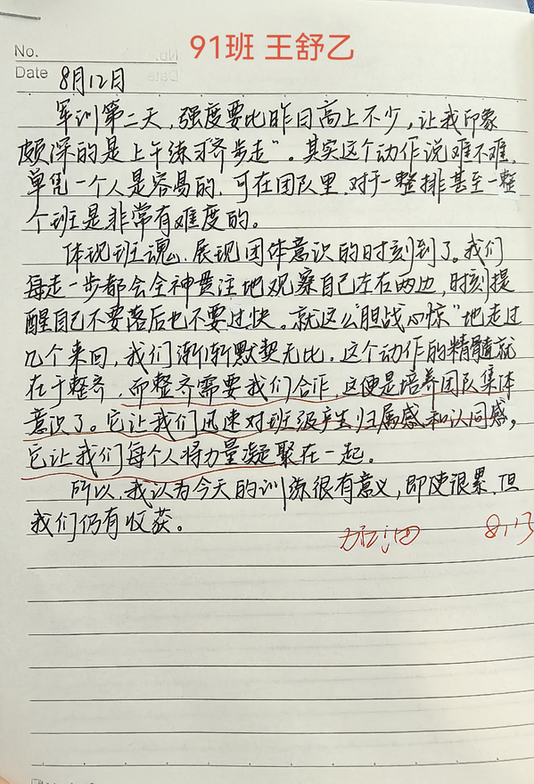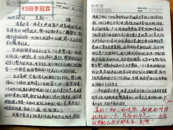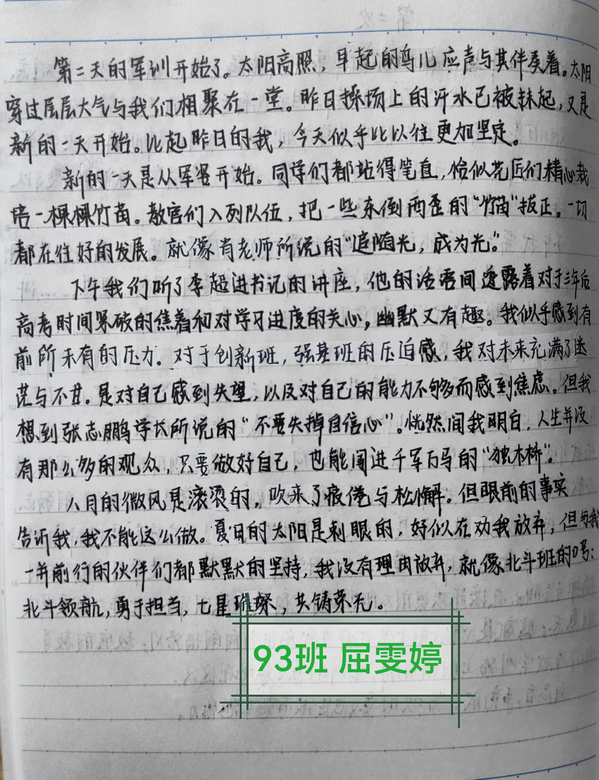 优秀军训日记展示(一) 每一天,汗水交织梦想! 每一天,都是成长的印记! 一起来看看同学们的军训感悟吧!