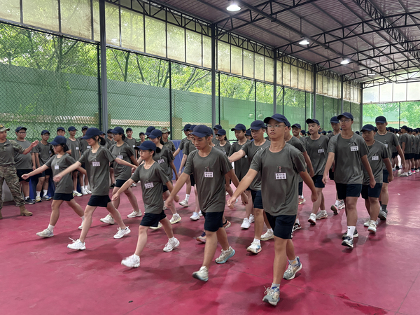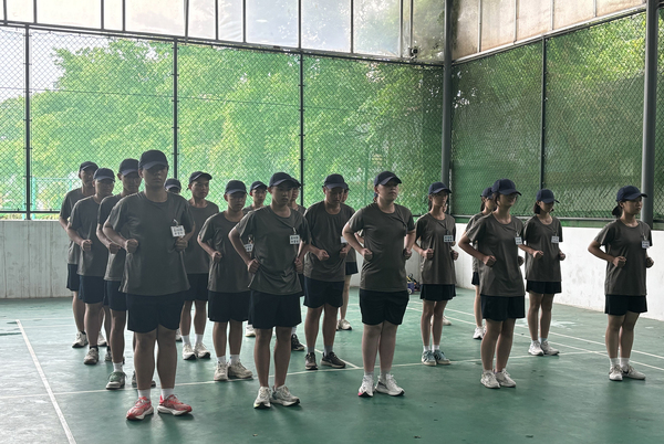 突如其来的暴雨,浇不灭训练的热情!同学们转战体育馆、球类馆、教学楼连廊下,在方寸之地继续挥洒汗水。虽然场地受限,但军姿依旧挺拔,摆臂整齐有力,口号洪亮震耳。雨水是挑战,更是成长的见证——少年们用坚持诠释:风雨无阻,青春无畏!