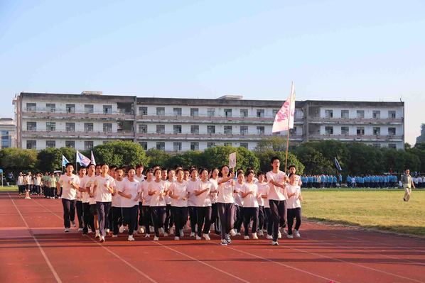 各班方阵依次跑过主席台,整齐的步伐、铿锵的气势、昂扬的身姿,伴随着震天响的口号,展示着桂电中学、桂电附属学校学子的青春与活力!