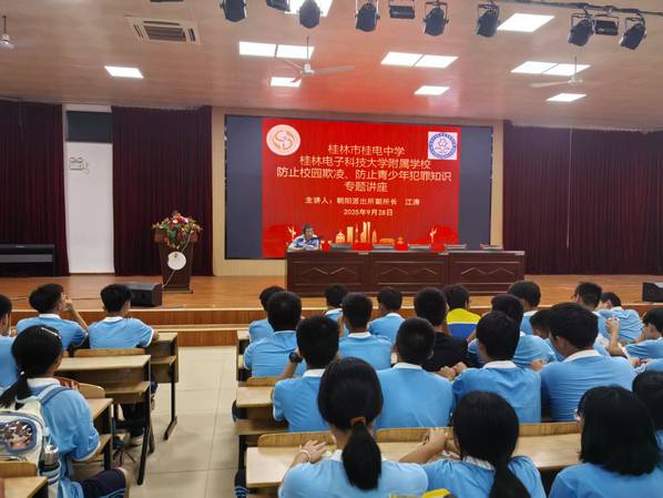 向校园欺凌说“不”——桂电中学、桂电附属学校举行预防校园欺凌专题教育活动时间:[2025-09-29] 来源:桂电中学 点击数:10