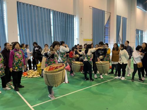 3月8日下午,学校在金鸡岭校区体育馆举办了“乡风村俗”女教职工趣味运动会,设置了五谷丰登、安“橘”乐业、“薯”我最快 、勇挑重担四个项目,利用箩筐、簸箕等农具作为道具,比赛过程紧张激烈、妙趣横生,同时有效地助力了乡村振兴。