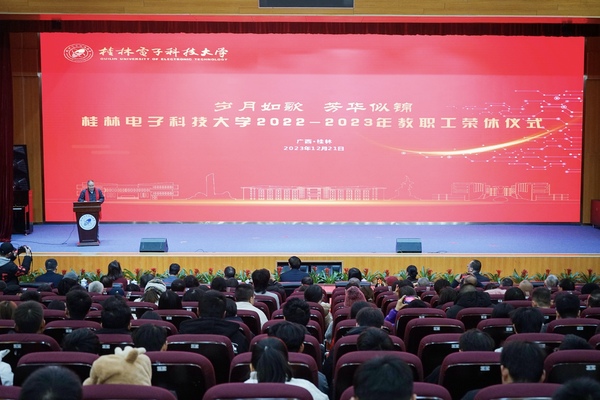 校党委书记唐平秋代表学校党委、行政,向70余位近两年光荣退休的教职工,向全体离退休老同志表示衷心的感谢和崇高的敬意。他指出,荣休教职工把美好年华献给了桂电,见证了学校的改革、建设、发展,是学校的宝贵财富,是年轻教师奋发向上的精神动力,是青年学生成长进步的励志榜样。学校的每一点变化、每一步发展、每一项成就,都蕴含着他们的心血和智慧,凝结着他们的辛勤和汗水。他希望荣休教职工退休不退志、离岗不离心,一如既往地关心、支持学校事业的发展,积极帮助青年教师成长,争做爱党爱国的坚定者、桂电精神的传承者、青年师生的引路者。学校将以“思想上关心、生活上照顾、精神上关怀”为宗旨,用心用情、尽心尽力做好离退休工作,为离退休教职工提供周到细致的服务,定期向大家报告学校工作情况,及时分享事业发展的喜悦。希望广大教职工尤其是青年教师,要汲取老同志身上的宝贵经验、优良作风、光荣传统,学习老同志的忠诚品格、育人信仰、公仆情怀,牢记为党育人、为国育才的初心使命。广大青年学生要爱校荣校、勤奋苦学、全面发展,以实际行动回报老师们的谆谆教诲。