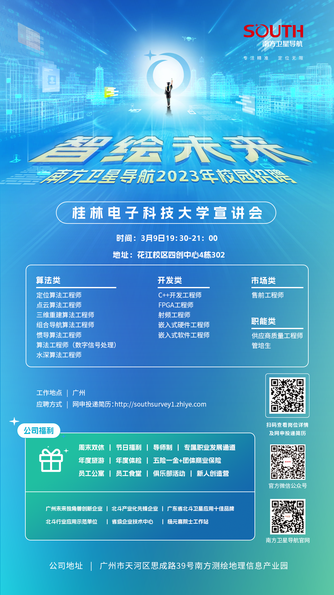 岗位多多,平台广阔,薪资优厚,福利完备!不管你考不考研,不管是否已经有offer入账,都可以向南方卫星导航投递简历,也许会有不一样的发现