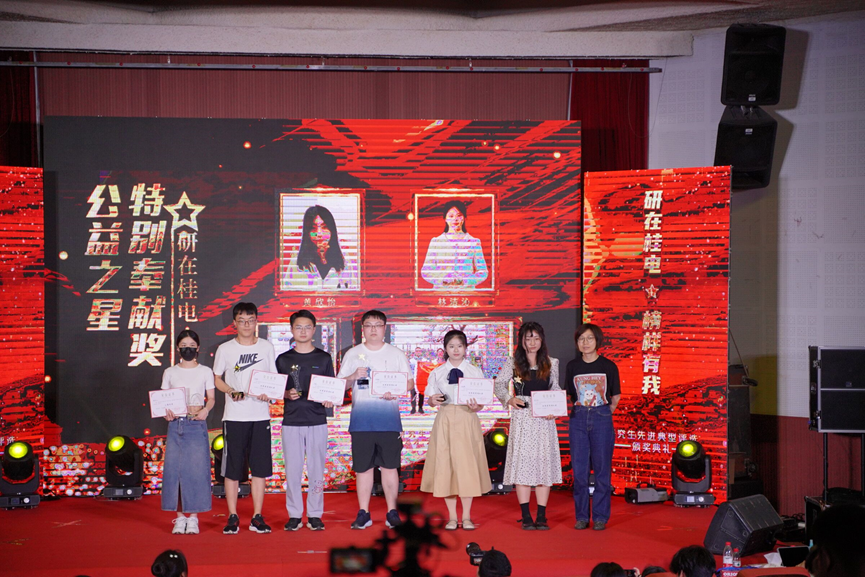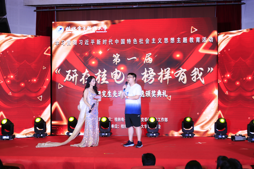 在2023年“青春桂研,歌向未来”研究生十佳歌手大赛暨第一届“研在桂电,榜样有我”研究生先进典型评选颁奖典礼上,何海智同学作为一位获得特别奉献奖的献血者受到了主持人的特别邀请,并分享了他令人动容的献血故事。
